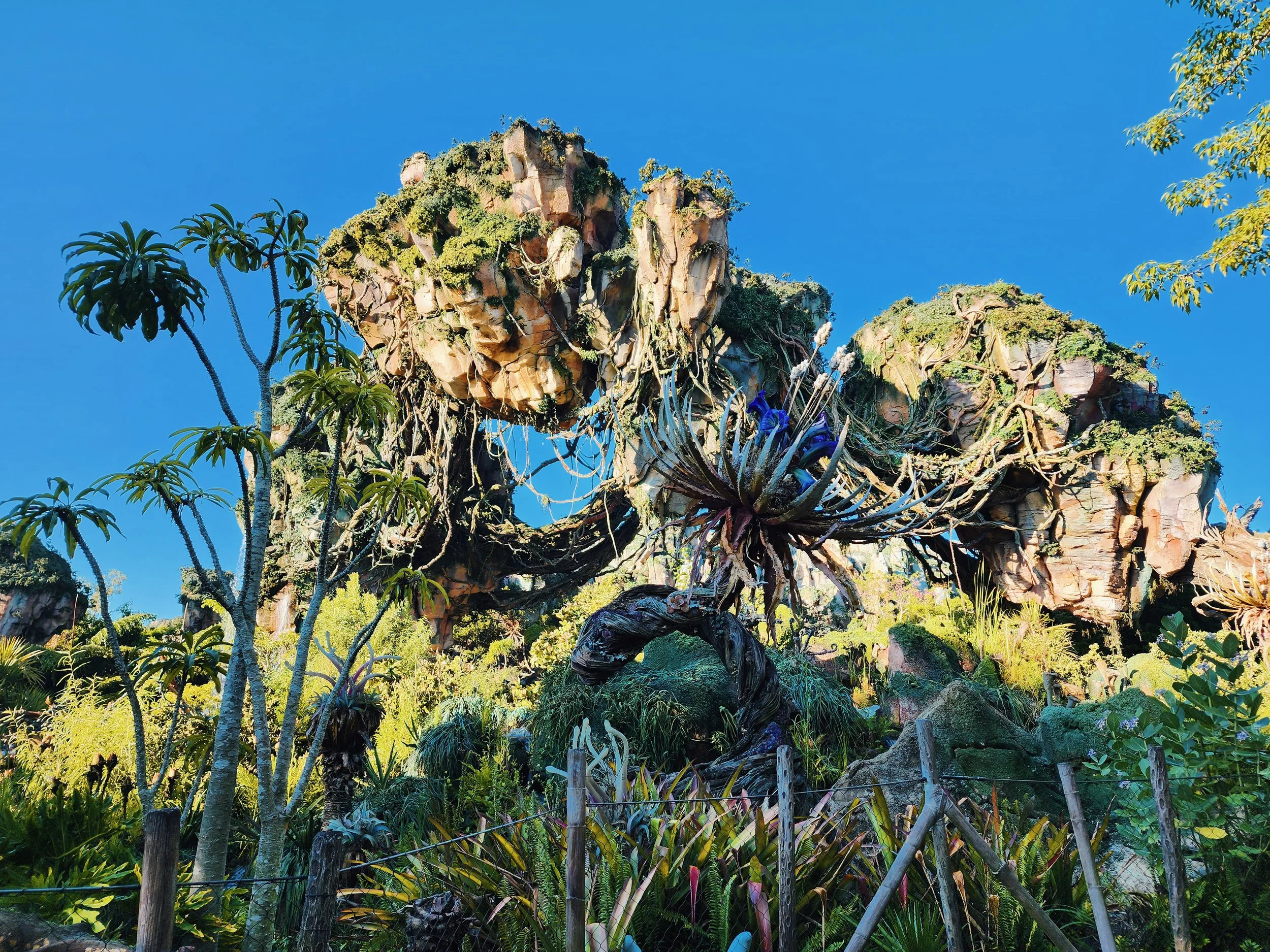 Pandora - pretty theming. Asia - Breakfast muffin & a cookie alongside our coffee. Walked back to Africa - gorillas etc. Walked back to Asia again - bird show. Walked to Dino area, then left the park.